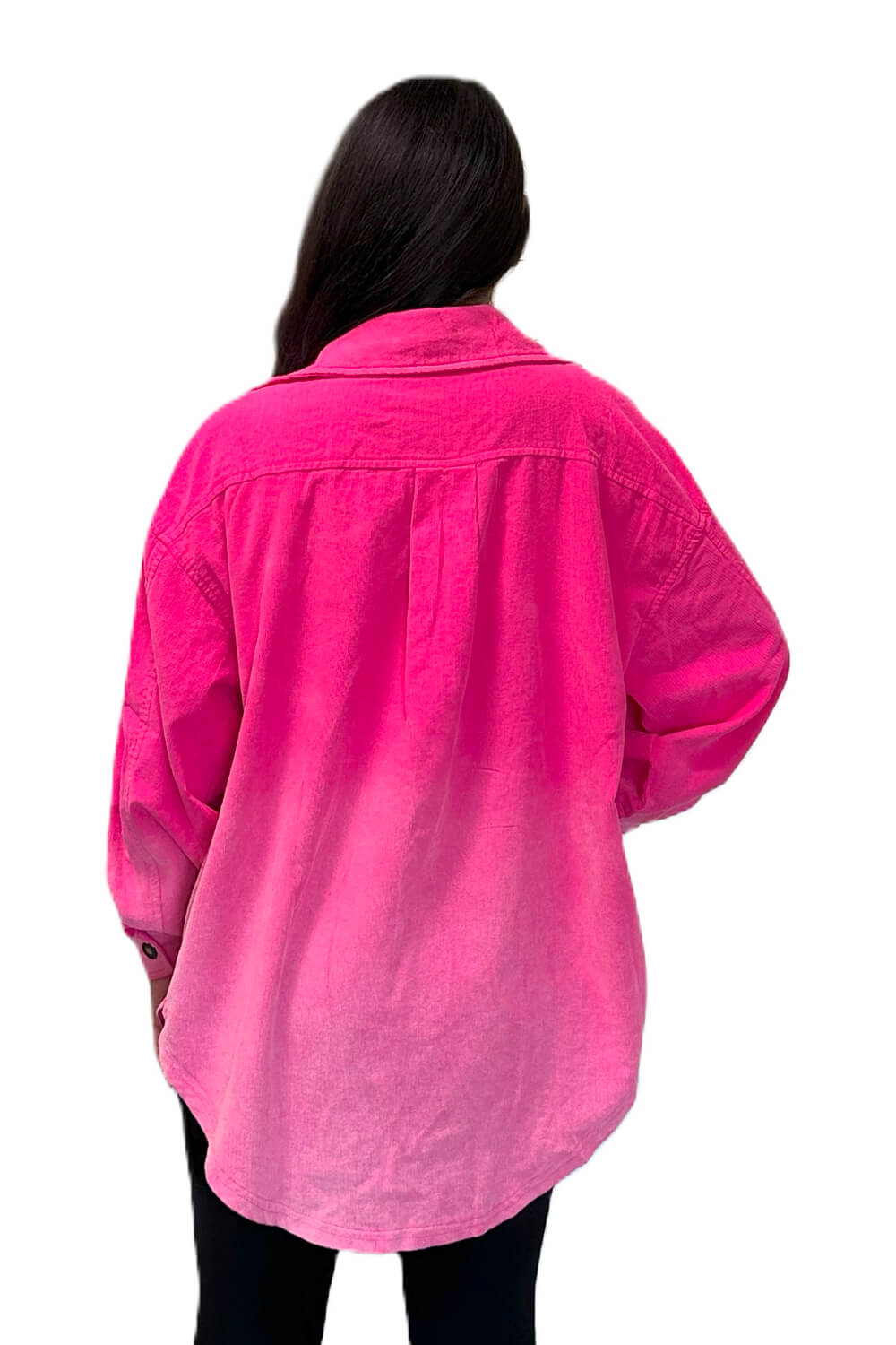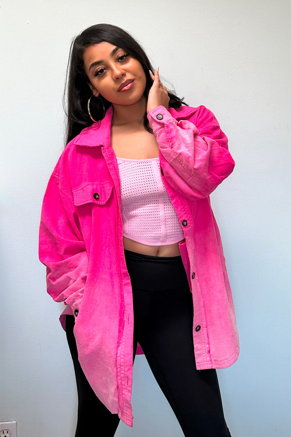 This lightweight, oversized shacket pairs perfectly with some leggings and boots or sneakers for an effortlessly cute look.