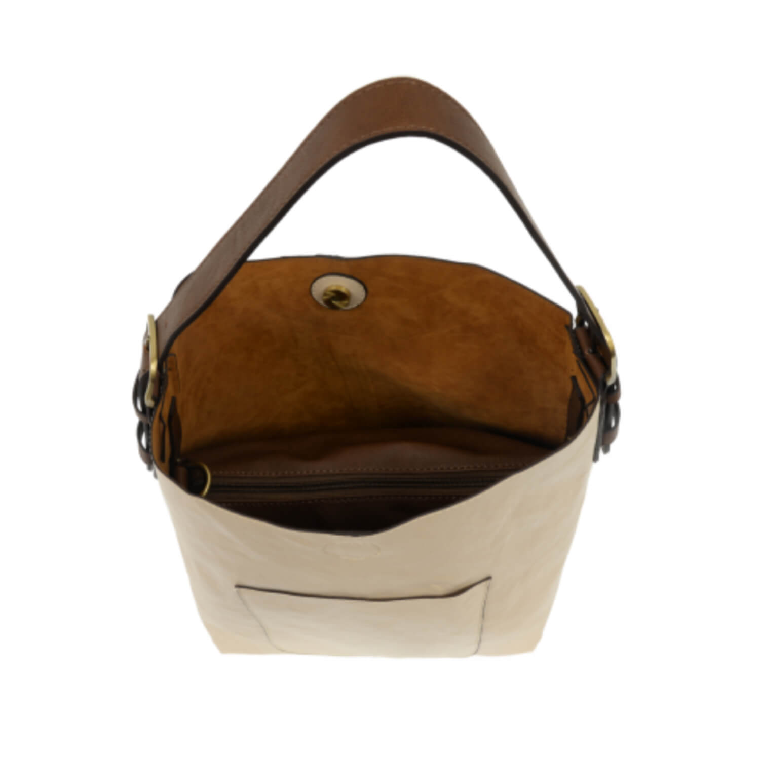 Trust me when I say, this is the perfect tote bag! This bag is made of rich Vegan Leather and accented with neutral straps. Best of all, it features a removable crossbody bag that can be used to organize your bag, or used as a crossbody all on its own! This roomy bag features a front pocket and magnetic closure.