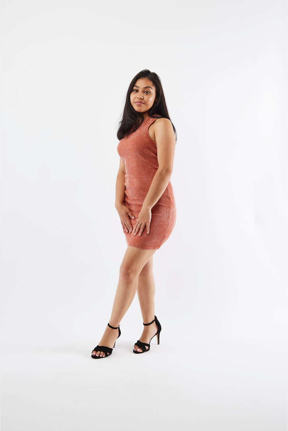 ACID WASHED RIBBED MINI DRESS BAKED CLAY