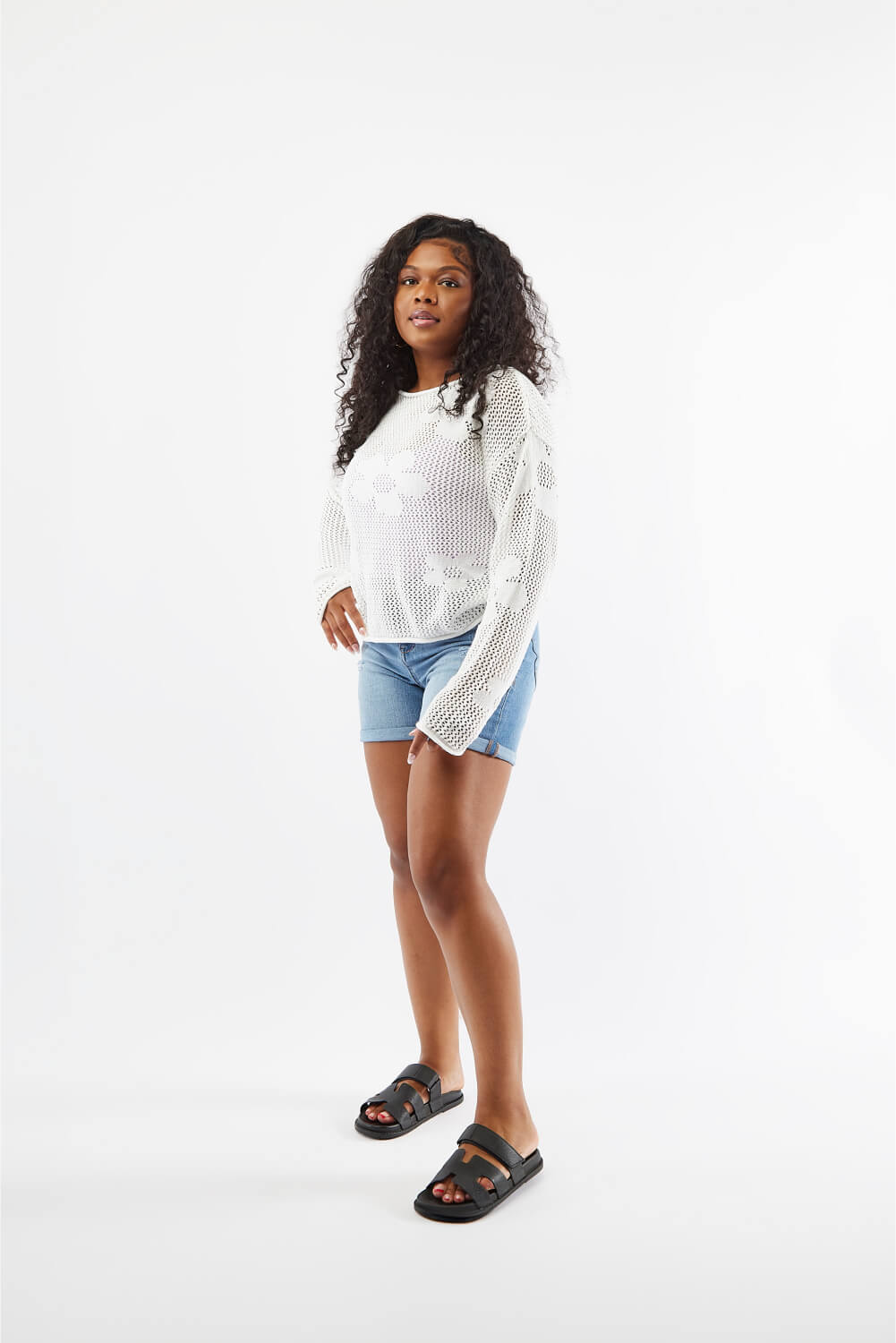 The perfect summer sweater featuring daisy crochet details.